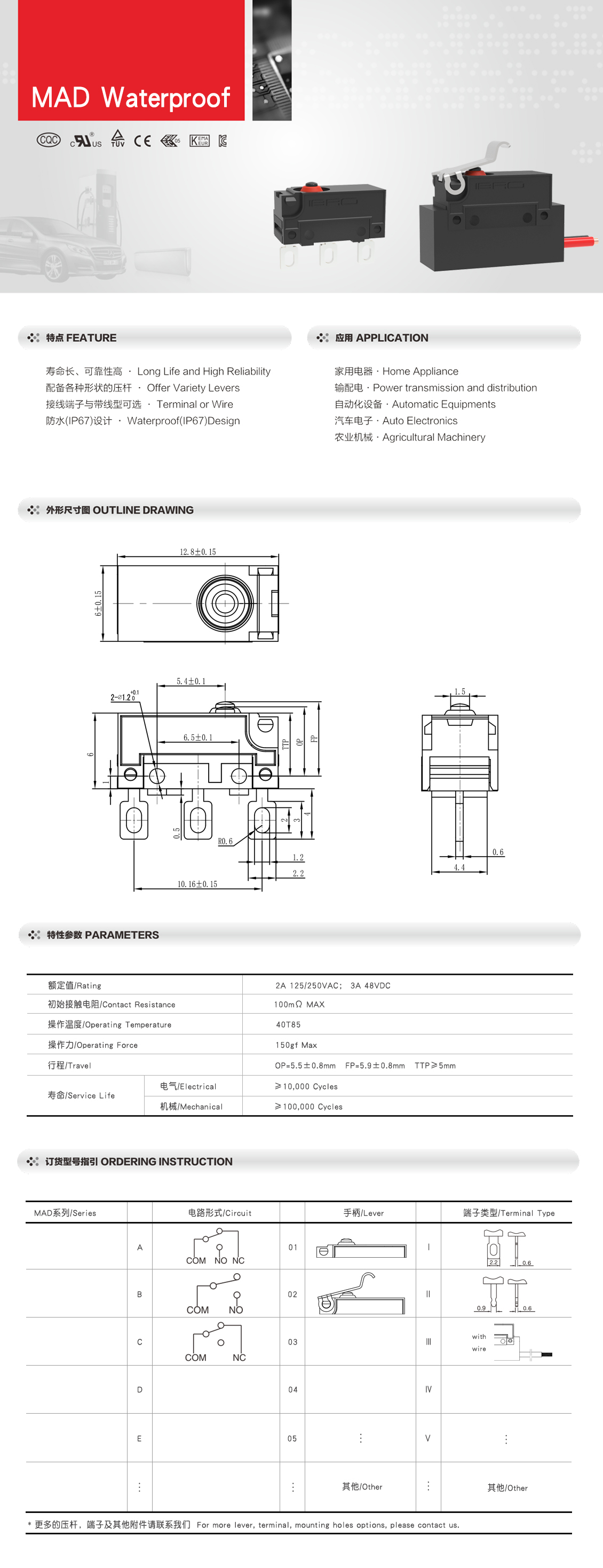 防水微动开关MAD系列
