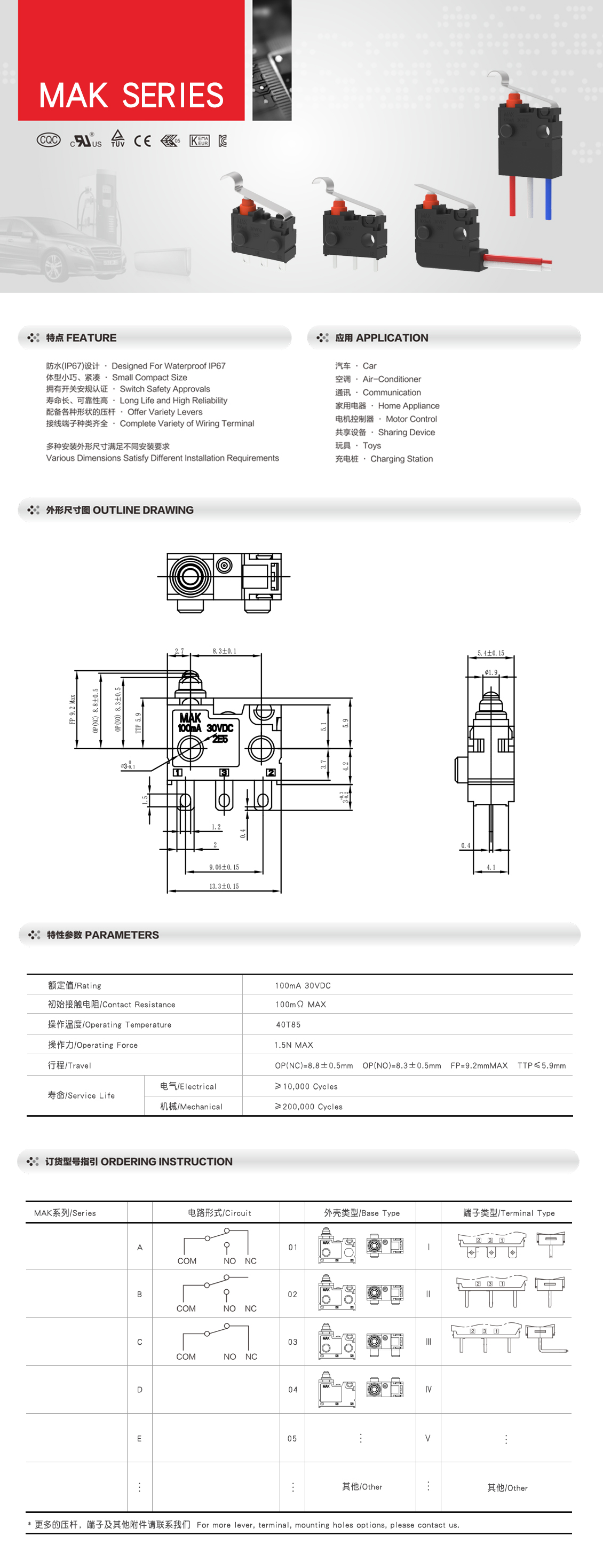 防水微动开关MAK系列